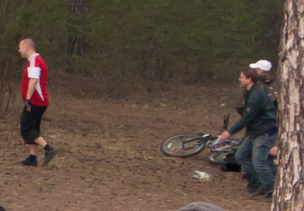 Похож, да не совсем, у этого футболка снизу красная, а у сворачивающего баннер в районе задницы что-то белое виднеется. Хотя по остальным признакам все сходится. А вот его напарник точно похож 1 в 1. Стену позора будем заводить?