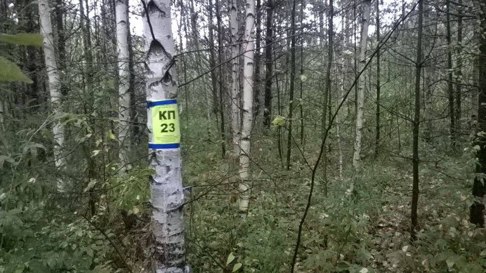 На местности КП представляет собой лист А4 в файле с номером КП. КП дополнительно обозначено светоотражающей лентой и нарисованным краской номером КП на опоре размещения.