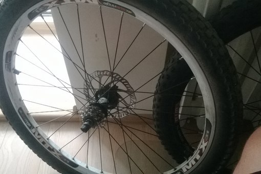 Втулка Sram X7 на промах, обод MTX 31 двойной 32 спицы, покрышка Maxxis Holy Roller, ротор 160 Tektro, без касеты. 3500 и 4300 с касетой Shimano cs- hg41 на 8 скоростей 4 звезды снято, в наличии при желании можно будет поставить обратно, касета новая катана всего 1 раз, от тандема до центра и обратно на тандем.
