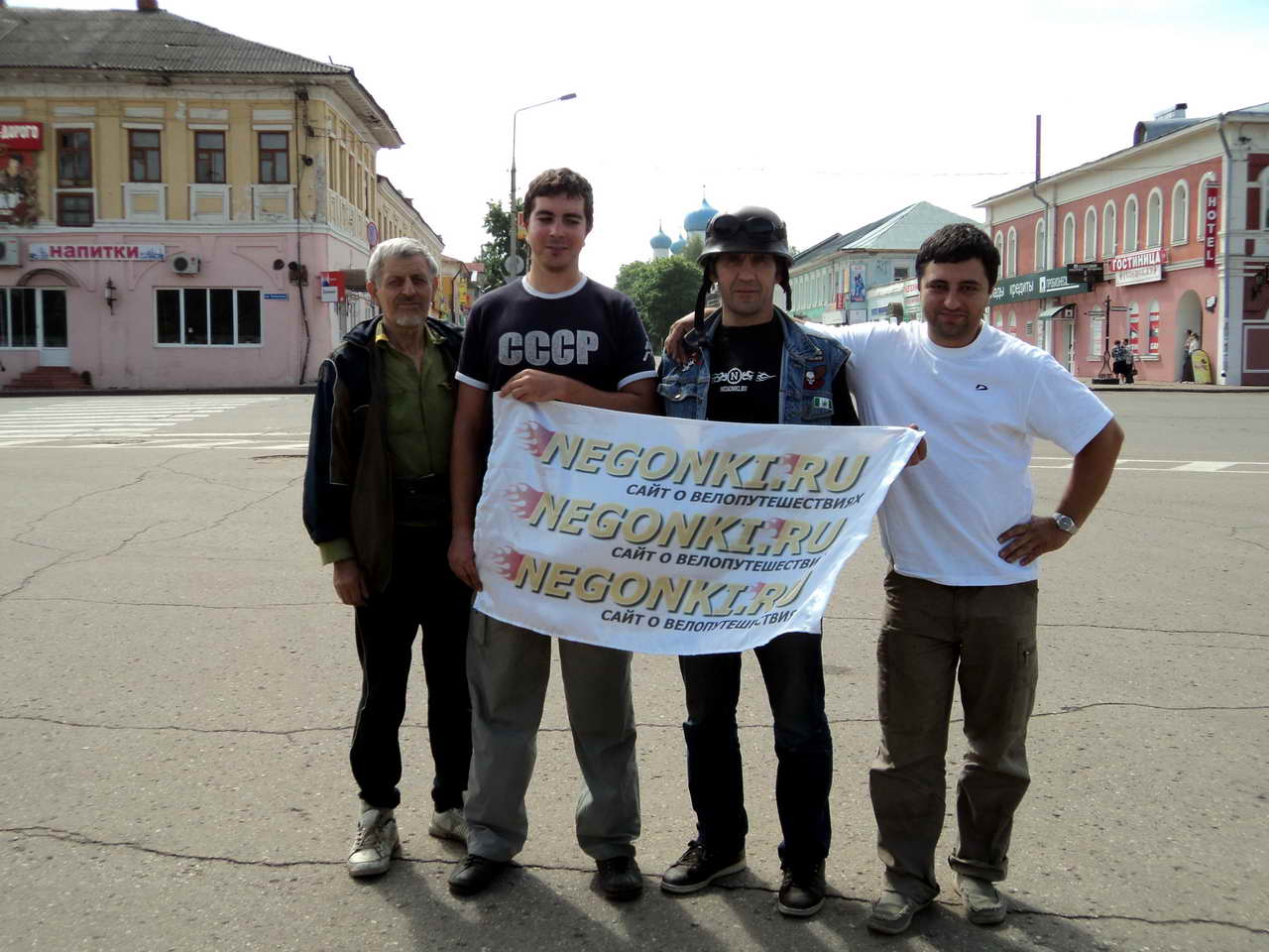 Да, за участие берут регистрационный взнос в размере 200 руб. для участвующих в велоэкскурсии и за эти деньги вы получаете массу впечатлений, кормежку, а также бесплатно место в охраняемом палаточном лагере в красивейшем месте на берегу реки, спрятанном от посторонних глаз лесным массивом, где вам и дрова даже не нужно искать и можно пользоваться одним общим костром. В общем, просто ставите палатку и готовите еду или просто покупаете ее готовую и горячую тут же. Для полноты ощущений мы поучаствовали и в конкурсе "визитка" от клуба Негонки. Идею сценки подал Чоппер кубик, отшлифовали немного совместными усилиями прямо на обратной дороге (благо ехать можно было чуть ли на всю ширину дороги из-за низкого трафика) и вперед!