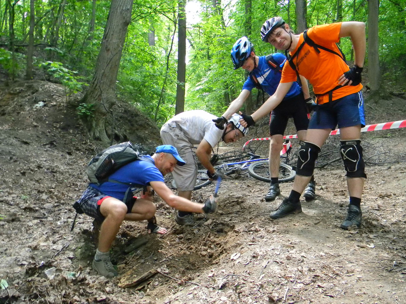 Такое впечатление в обзоре сверху, что все куда-то спасаются, держась за убегающие велосипеды ..