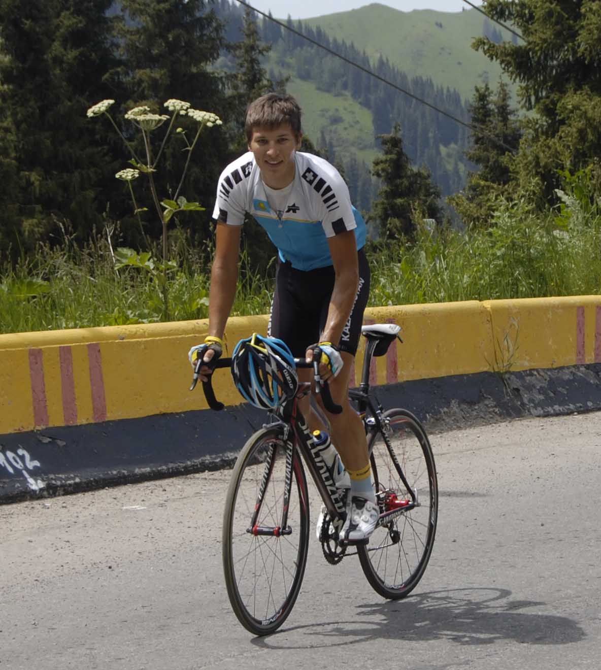 Как увидел фотик, привстал с седла, заулыбался, хотя позади у него был многокилометровый подъем.