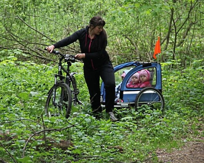 Нашла фотки первой Машиной покатушки в рюкзачке ))