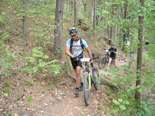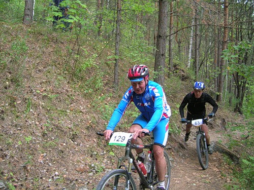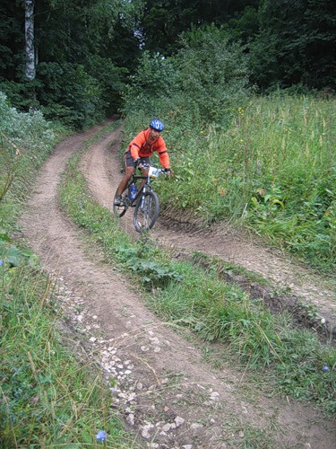 Трасса вдоль берега впечатлила мало, разве что проколов немерено - через каждый километр. От Ширяево до асфальта 10-12 точно. В прошлом году сам там прокололся, поэтому со страхом ждал - когда же моя очередь? На козьей тропе в этот раз почти никто не мешался - спешиваться не пришлось. В конце тропы, где нужно бежать наверх с велом на плече, догоняю айратыча, потерявшего, как выяснилось, 2 бутылки при 2х падениях.
